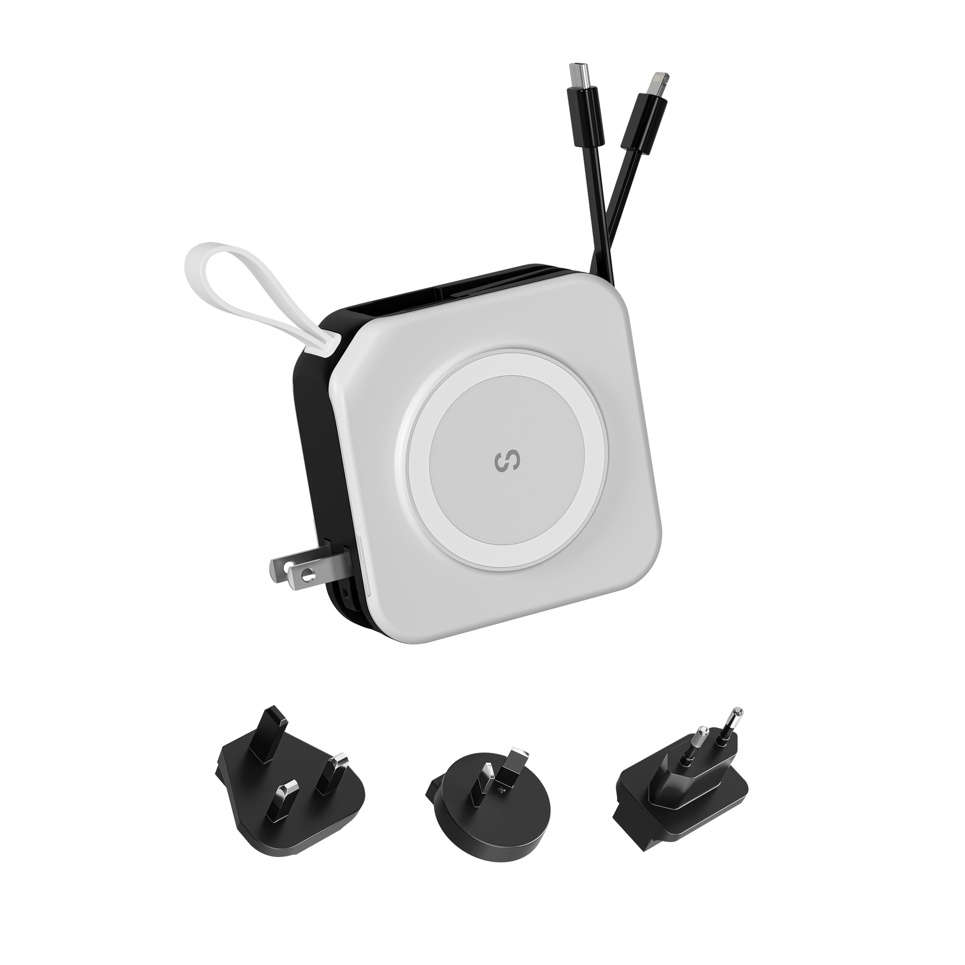 PowerPro Universal es el mejor cargador de viaje con adaptadores intercambiables incluidos. Empaquetado con una batería de 10,000 mAh, le dará a sus dispositivos un tiempo de juego más largo. Además, tiene un cable de iluminación incorporado para dispositivos Apple y cable USB-C incorporado para cargar dispositivos Android. También tiene Fast PD 20W USB-C, lo que significa que puede cargar su dispositivo habilitado para PD al 50% en solo 30 minutos. También hemos incluido una bolsa de viaje en la caja, que está diseñada para adaptarse perfectamente a PowerPro junto con los 3 adaptadores mundiales. El PowerPro Universal es un verdadero superhéroe multitarea y imprescindible para cualquier viaje.
