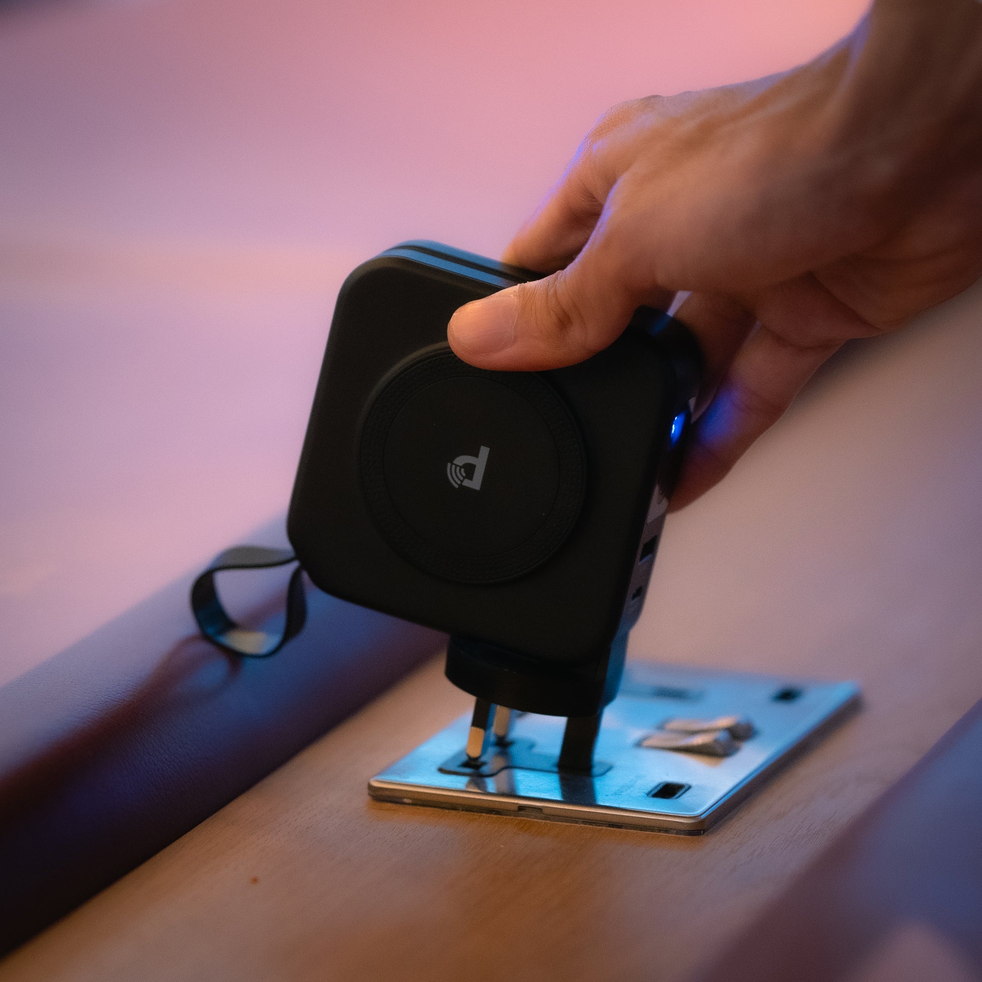 Ningún cargador está completo sin la simplicidad de la carga inalámbrica. PowerPro Universal tiene un área de carga inalámbrica Qi Fast Qi de 15W, lo que lo convierte en una forma rápida y conveniente de cargar un dispositivo adicional mientras viaja.