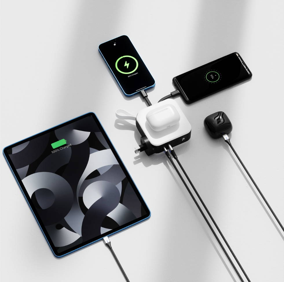 PowerPro Universal es capaz de cargar casi cualquier dispositivo móvil que tome USB-C o Lightning como un método de carga, junto con cualquier dispositivo inalámbrico de Qi habilitado. También tiene un cable de iluminación y un cable USB-C incorporado, lo que significa que no necesita llevar cables de carga adicionales.