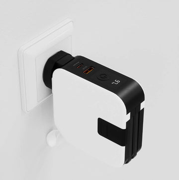 Recargar el PowerPro Universal es tan simple como enchufar a cualquier enchufe de alimentación. Es por eso que no incluimos un cable de carga y un enchufe, no lo necesita.